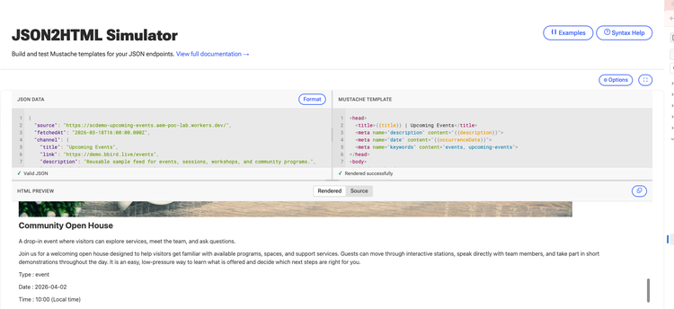 Open: https://tools.aem.live/tools/json2html-simulator/