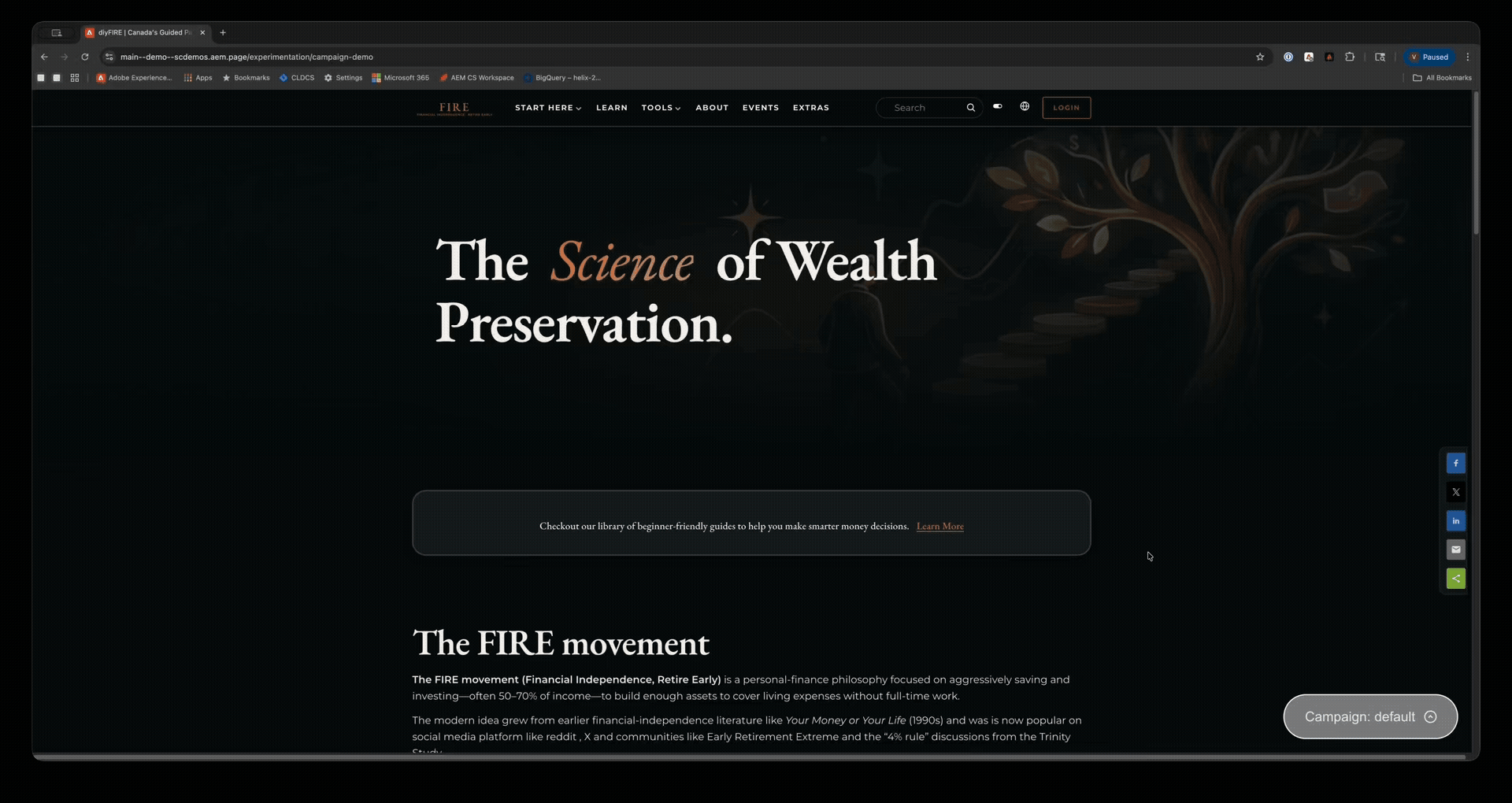 This demo is designed for pre-sales teams showing how authors can run A/B tests, personalize content for different audiences, and serve targeted campaign experiences — all from the authoring environment. No code changes, no developer tickets, no tag manager configuration.
